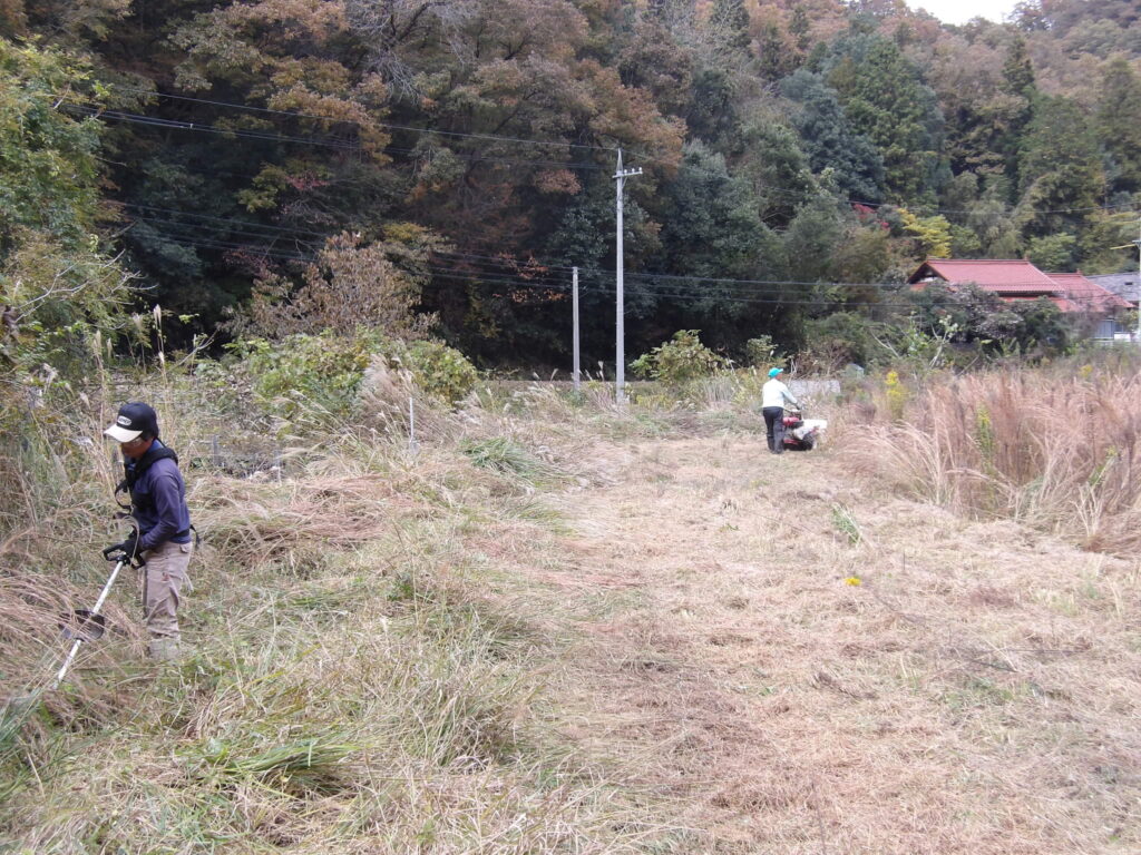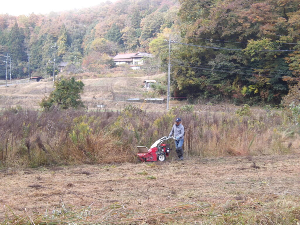 遊休農地等の草刈りをしました(3回目) 活動報告 2025.11.282026.04.05 冬を迎える前に地域全体の遊休農地の草刈りを実施しました。今年は遊休農地が大幅に拡大したため、農事組合法人かわねよりハンマーナイフモアを借りて作業しました。来年度以降、これらの農地をどのようにするか検討しなければなりません。